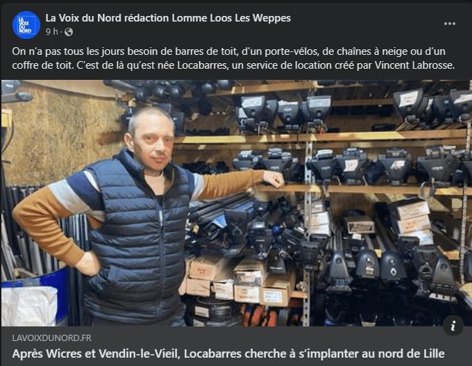 On n’a pas tous les jours besoin de barres de toit, d’un porte-vélos, de chaînes à neige ou d’un coffre de toit. C’est de là qu’est né Locabarres, un service de location imaginé par Vincent Labrosse. Après avoir démarré à Wicres, le concept s’est implanté à Vendin avant, peut-être, d’arriver à Bondues, Saint-André ou Wambrechies.